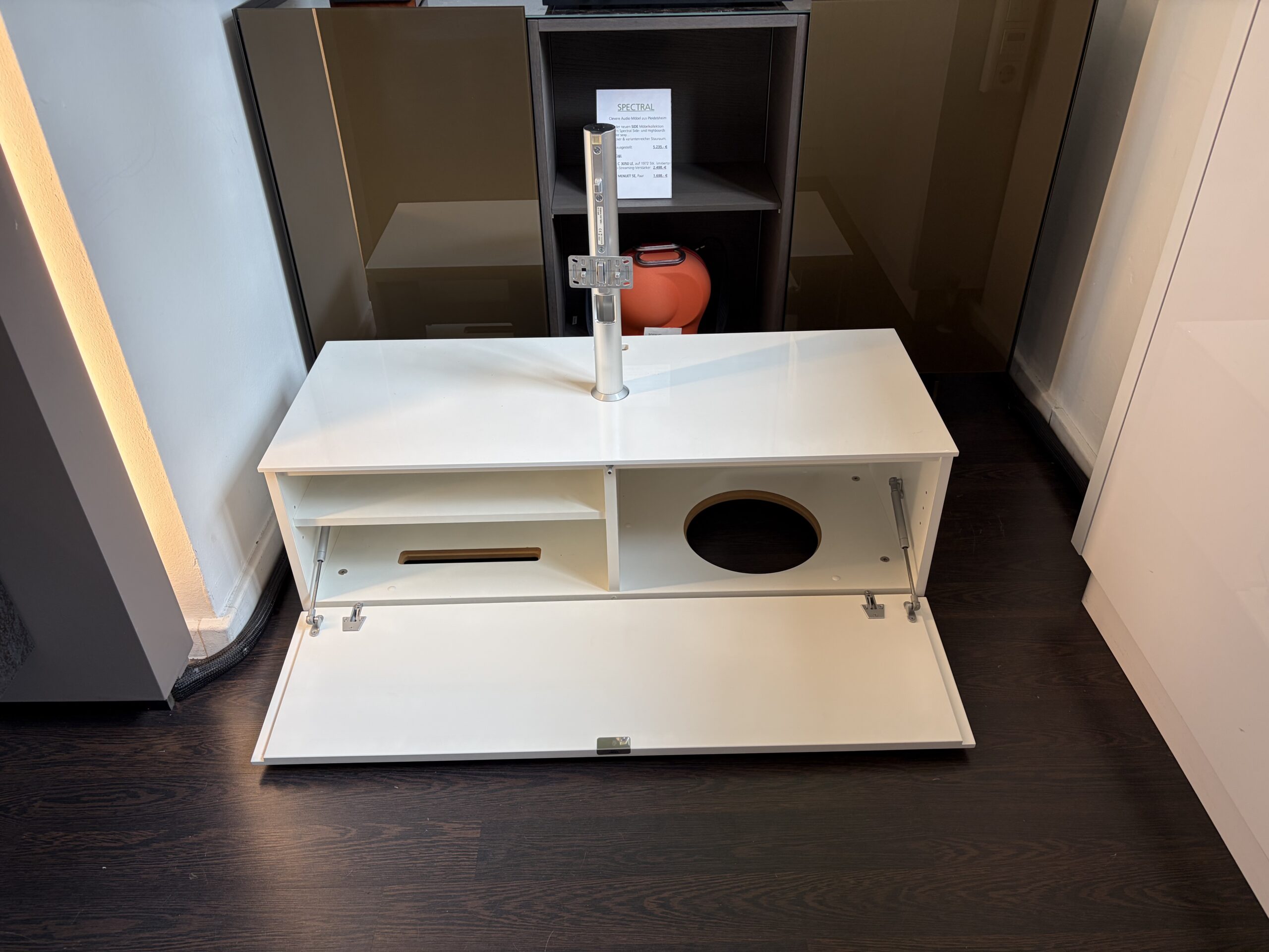 in weiß hochglanz mit Klappe und Subwoofer Öffnung im Boden